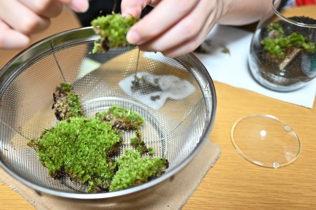 この下処理は少し手間に感じるかもしれませんが、後から「変な虫が出てきた!」と慌てるのを防ぐための重要な工程です。特に採取した苔を使う場合は必須の作業と言えます。