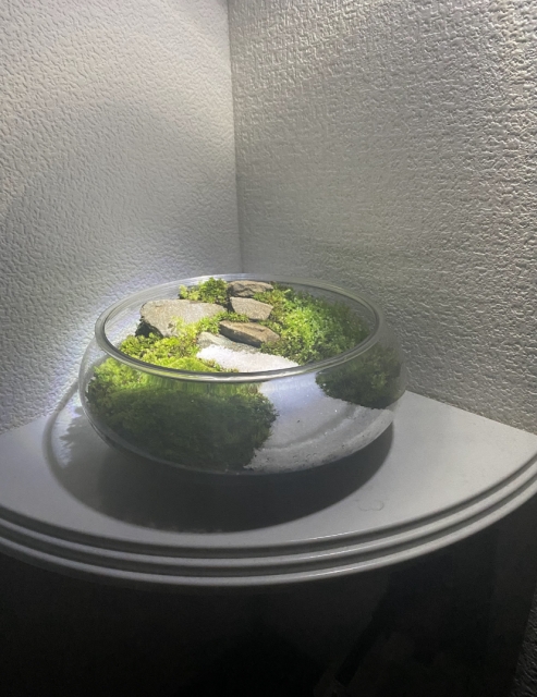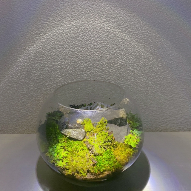 一方で、絶対に避けてほしいのが「直射日光が当たる場所」です。ガラス容器は温室効果をもたらすため、直射日光が当たると容器内の温度が急激に上昇します。すると、苔はまるで蒸し風呂に入ったようになり、細胞が壊れて「煮えた」状態になってしまいます。一度煮えて変色した苔は、残念ながら元には戻りません。夏場の窓辺などは特に注意が必要です。